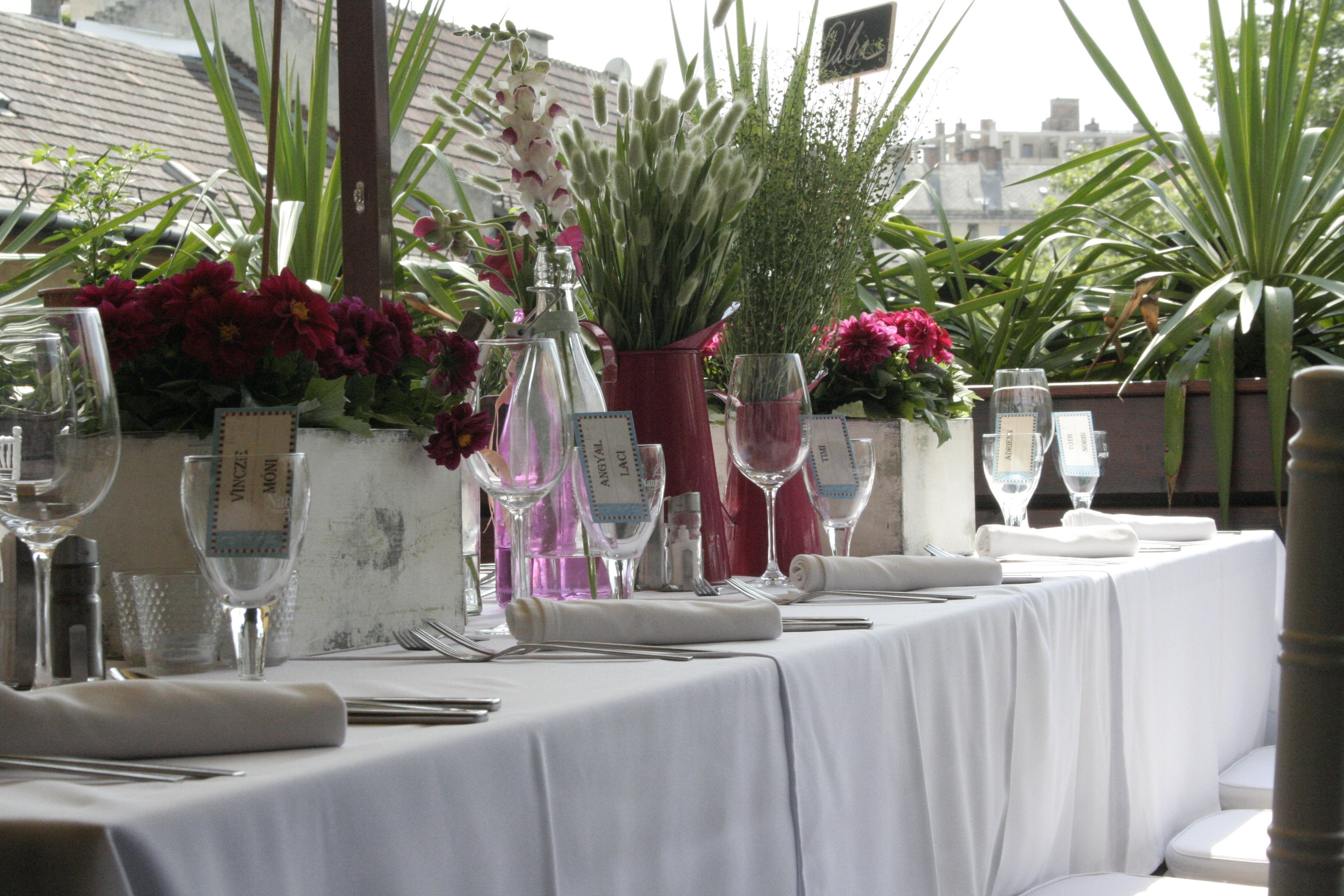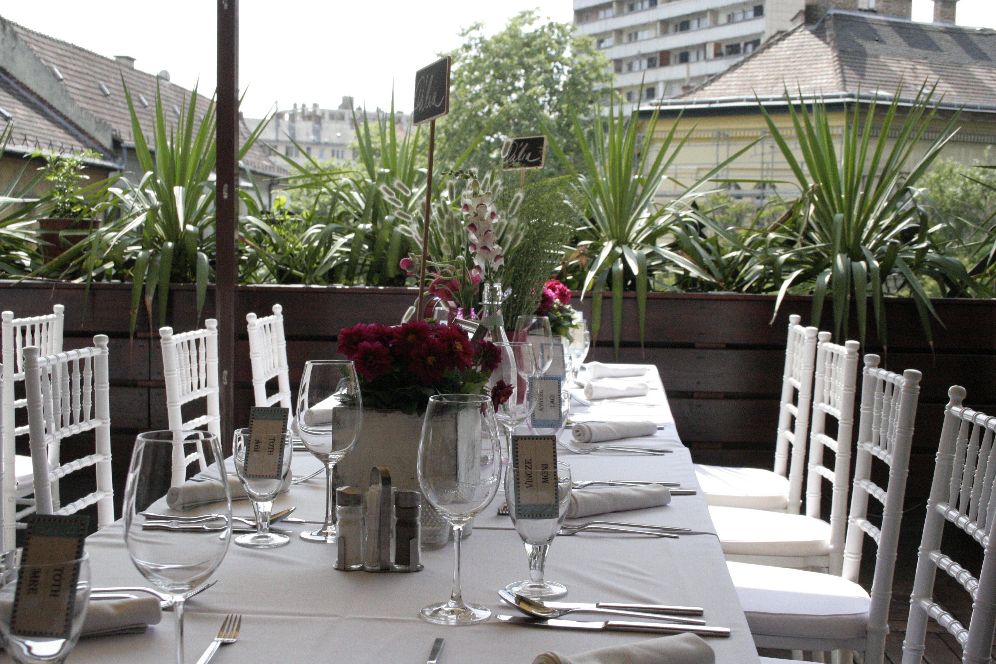 - Terasz ültetve (nyáron): 100 fő állófogadás: 200 fő